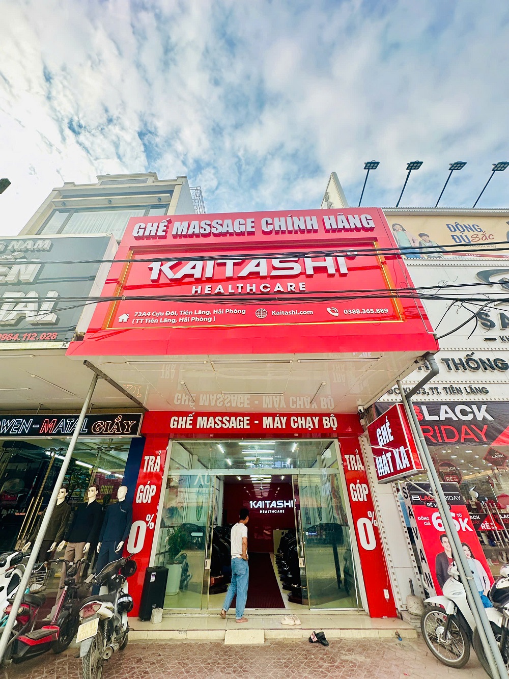 Để sở hữu những chiếc máy chạy bộ điện Kaitashi chính hãng, bạn nên đến trực tiếp chi nhánh phân phối chính thức của Kaitashi tại 2 cơ sở tọa lạc tại Tiên Lãng và Kiến An, Hải Phòng. Đây là địa chỉ duy nhất, độc quyền phân phối dòng máy chạy bộ điện Kaitashi tại Hải Phòng. Showroom trưng bày máy chạy bộ điện của Kaitashi – Hải Phòng nằm ngay trục đường quốc lộ, mặt bằng để xe rộng rãi cùng với cơ sở vật chất hiện đại, diện tích mặt bằng rộng rãi trưng bày gần như đầy đủ mẫu máy tập chạy bộ mới trên thị trường hiện nay, vô cùng thuận tiện cho khách hàng đến xem và trải nghiệm miễn phí sản phẩm.